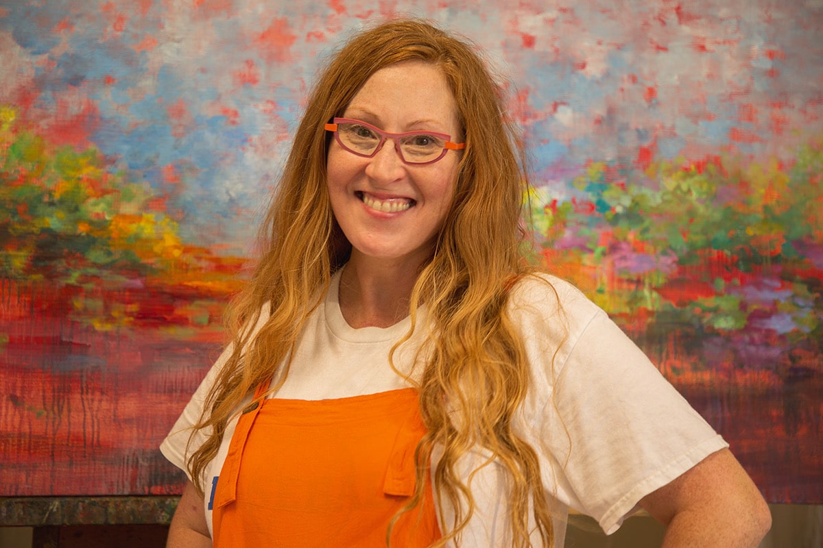 Julie Malone is a contemporary painter based in St. Louis whose luminous work bridges emotion, color, and abstraction. Born in 1971 in Kansas City, she earned a Bachelor of Fine Arts in Studio Art (Painting) from Central Missouri State University in 1995, and moved to St. Louis in 1996.