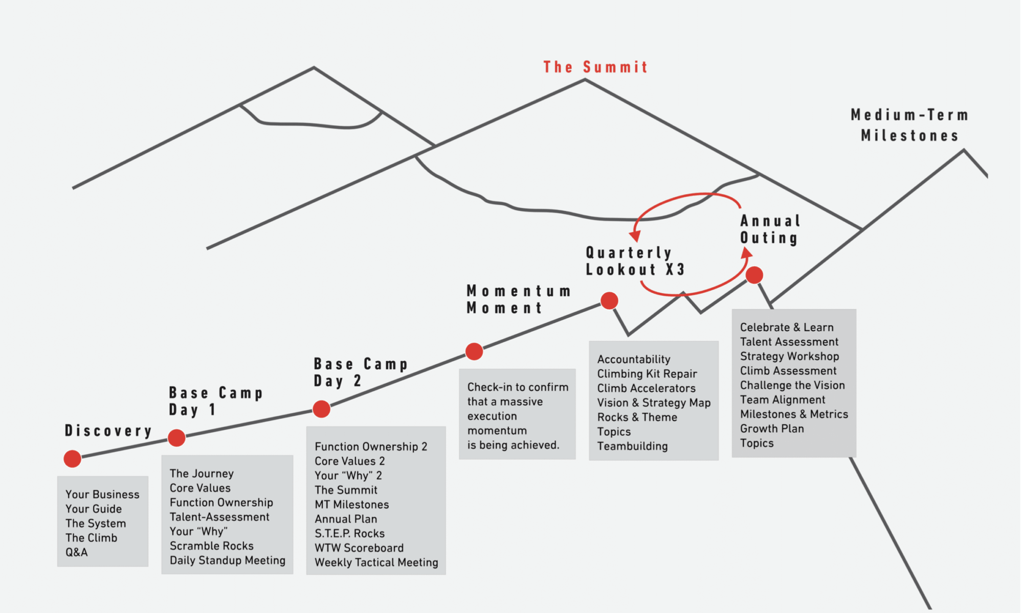 Each practice expands to: purpose, deliverable, example artifact (template, agenda, dashboard, etc.)